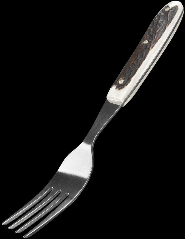 This is no ordinary picnic tool however. Both the fork and knife have stag handle scales with a full tang and rivet construction. The knife blade is as sharp as a standard Boker fixed blade knife and made from 440 stainless steel. Ideal for a steak!