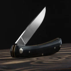 The Buffalo Hen and Rooster folder is an attractive little traditional slip joint penknife that is legal to carry in the UK. The blade is mirror polished 1.4116 Stainless Steel and snaps into the open and closed position securely. The handle is Buffalo horn with brass liners and nickel silver pins.