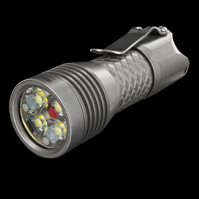 The MecArmy PS16 is an extremely handsome little flashlight with a seriously tough, stonewashed, CNC precision machined stainless steel body. It is equipped with 4 CREE XP-G3 S5 LEDs capable of 2000 lumens in the burst Turbo mode using a 18350 battery (not supplied) plus two lower outputs and a strobe.