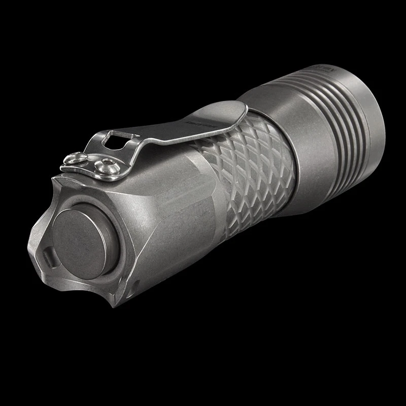 It is supplied with a 16340 Li-ion rechargeable battery (supplied) which is charged outside the flashlight via a USB connection and gives a lumen output of 1500. The tail switch is stainless steel too meaning the connection is always certain and the switch will never deteriorate with use. The low riding pocket clip allows secure carry.
