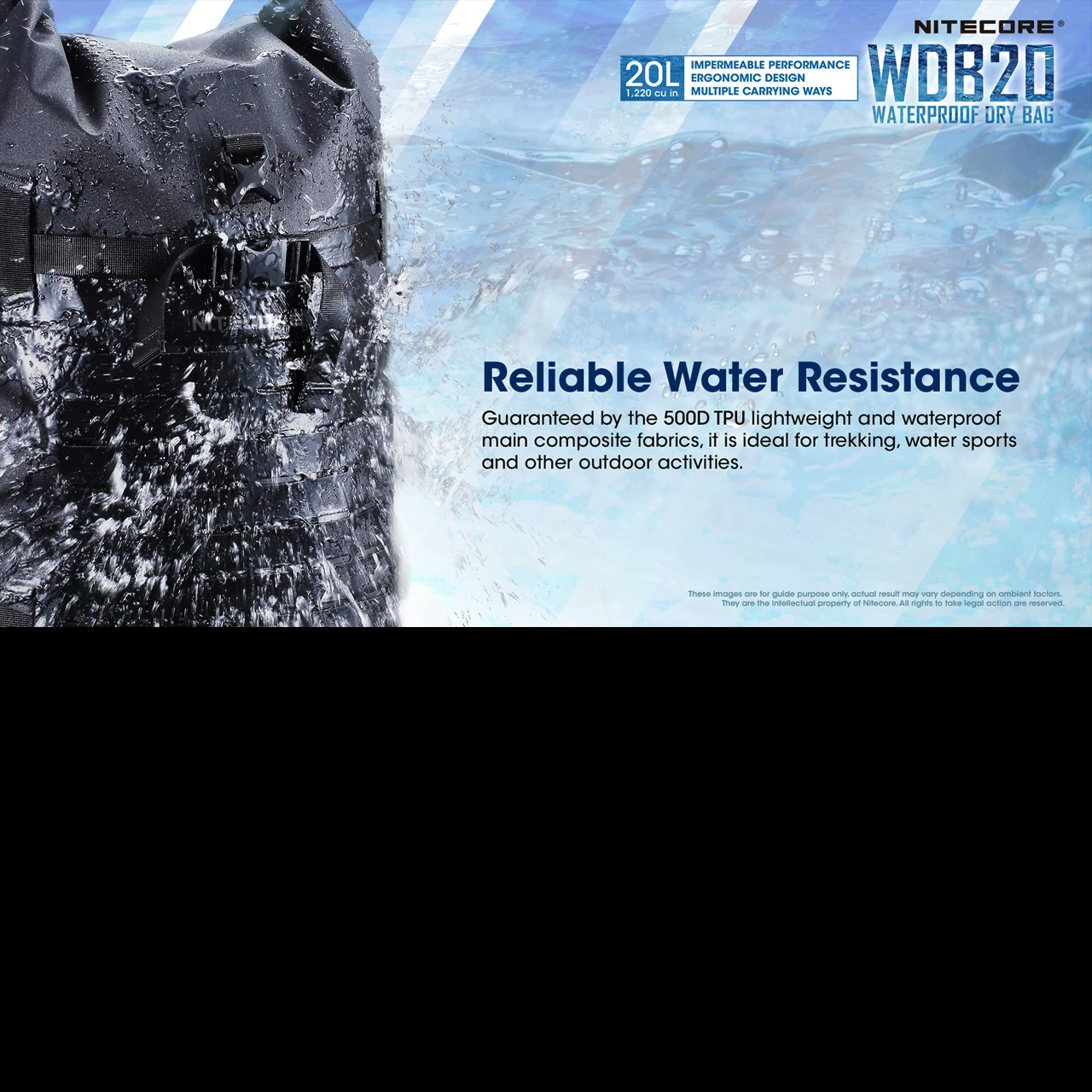 The Nitecore WDB20 is a 20L waterproof dry bag, designed for trekking, water sports and other outdoor activities. The bag features excellent impermeable performance, an ergonomic design and multiple carry options.