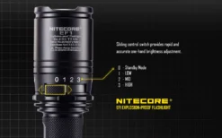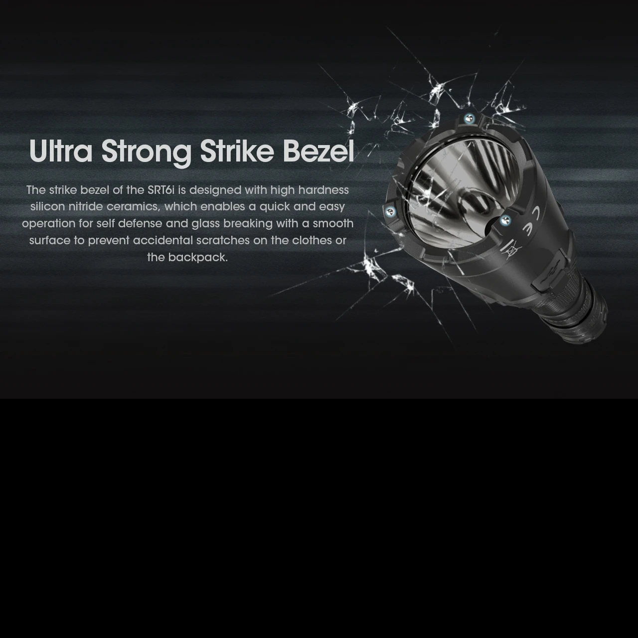In addition to the dedicated tactical mode for direct momentary activation of low and turbo mode, the SRT6i has a strong strike bezel for emergency use, a tactical U-shaped tail cap and is compatible with a range of optional accessories, including 40mm filters and traffic wands, gun mounts and the Nitecore RSW2i remote switch.
