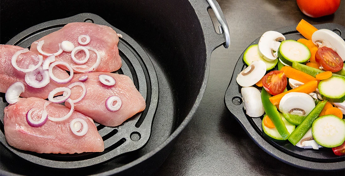 With the Petromax stack grate made of solid cast iron, baking and cooking in the Dutch Ovens (optimally suited for the ft6, ft9 Pot) is successful without burning the food, thanks to the generous distance created by the feet. Since the grate has small holes on the upper side, several stack grates can be piled up perfectly: it is thus possible to bake, braise and steam at several levels. Thanks to the three feet with a length of 4.3 cm (1.7 in) each, the stack grate also stands steadily in the fire or on the table as a trivet. It fries the perfect grill marks onto meat when used on the embers, or it also serves as a steady surface for putting down tea kettles or percolators.