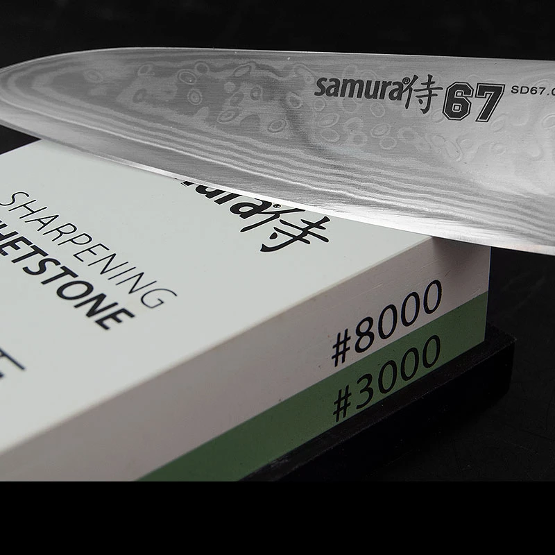 The best way to maintain and keep the edge on your Samura collection. The Samura Combination Whetstone is available in four combined grit levels and all are supplied with a rubber stand to keep you steady during the sharpening process.