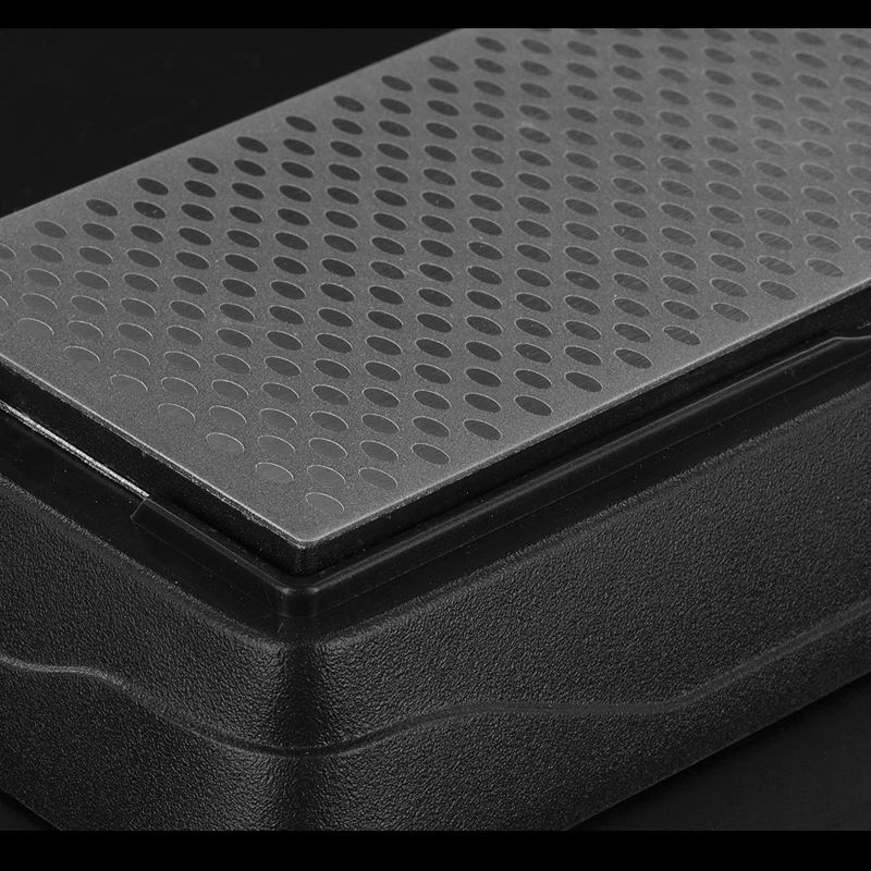 The double-sided grindstone with a grain size of 360 and 600 grit is designed for rough machining of the blade, aligning of the cutting edge angle, and elimination of any blade flaws that appear with use.